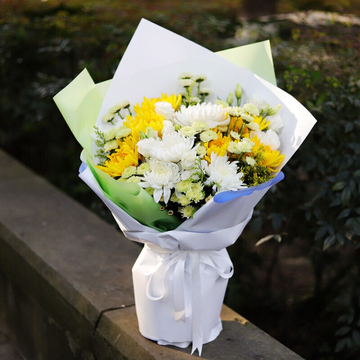 11朵黄白菊混搭,绿色小雏菊点缀
