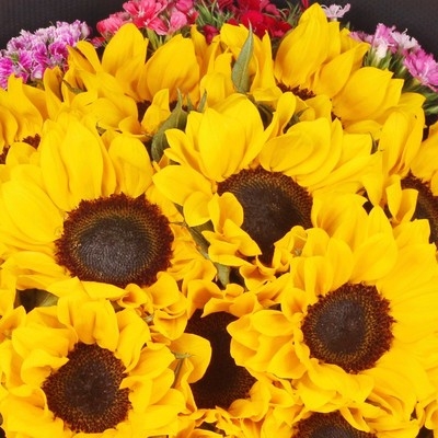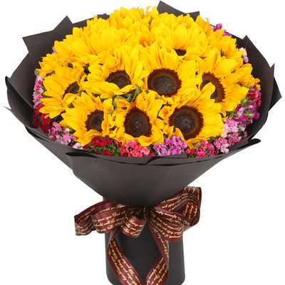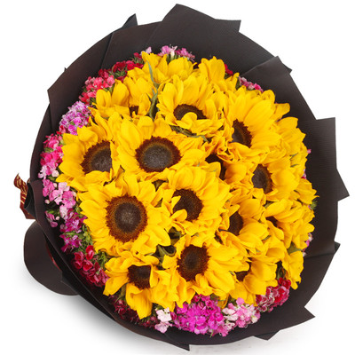 16支向日葵,石竹梅围绕。