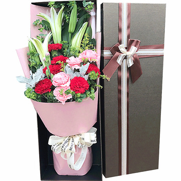 粉色欧雅纸扇形包装,淡黄色英文缎带束扎,礼盒装花语:身处千里外,问候如天籁。牵挂在心间,祝福如蜜甜。儿行千里外,母爱花常开。风雨人生路,母爱常萦怀。附送: