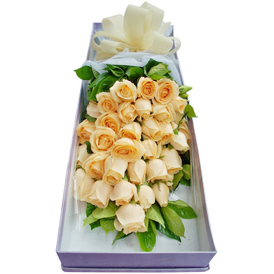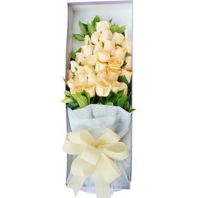 白色绵纸包装,浅黄色丝带束扎。长方形礼盒包装(礼盒根据各地进货不同,随机挑选,相似性为原则)花语:我爱你,不是因为你是一个怎样的人,而是因为我喜欢与你在一起时的感觉。附送:
