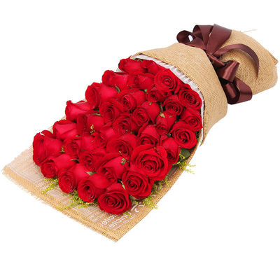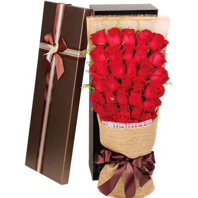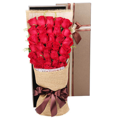 内英文雾面纸,咖啡麻片包装,咖啡缎带,咖啡色礼盒。花语:你若不离,我必不弃。爱情是历经风雨的双手紧握,是一路同行的相濡以沫。附送: