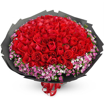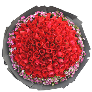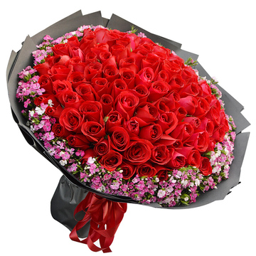 黑色硬卡纸圆形包装,红色丝带系蝴蝶结束扎。花语:翻阅时光的故事,有一些话语被记录,因为他足够浪漫!浏览爱情的画面,有一些色彩被印记,因为他足够深情!亲爱的,爱你附送: