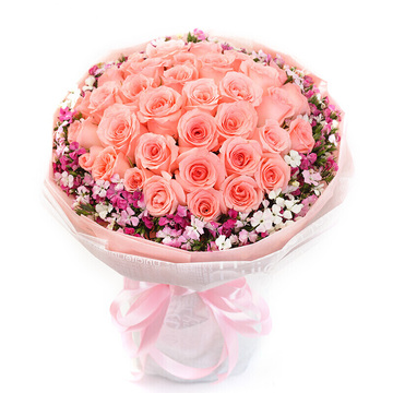 精选33朵戴安娜粉玫瑰,相思梅搭配。