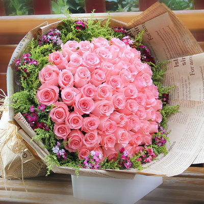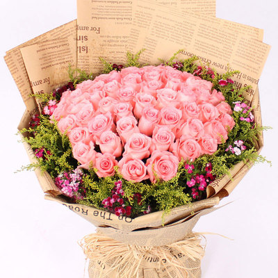66朵戴安娜粉玫瑰,大黄莺和相思梅外围(相思梅没有可用其它代替)