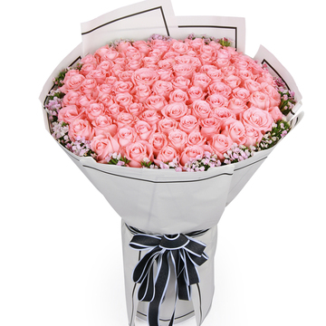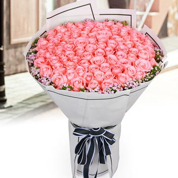 99朵戴安娜粉玫瑰,石竹梅丰满围边