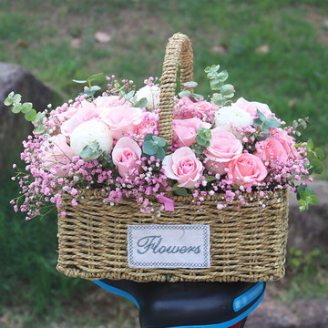 手提花篮花语:有了太阳地球才回转,有了地球月亮才回转,有了月亮星光才如此灿烂,有了你我的世界才如此丰富浪漫。附送: