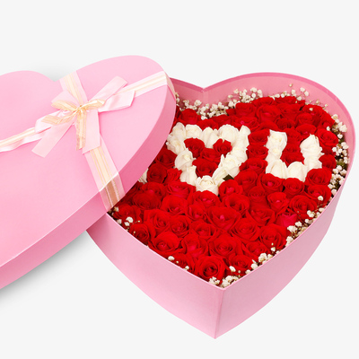 心形礼盒装,礼盒颜色随机花语:醇的酒,美的诗,动听的歌,优美的风景,比不过你我纵情相爱的时刻。附送: