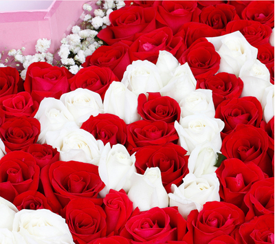 99朵红白混搭玫瑰拼字i❤u,白色满天星丰满围边