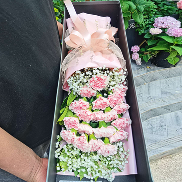 精选19朵粉色康乃馨,黄莺点缀