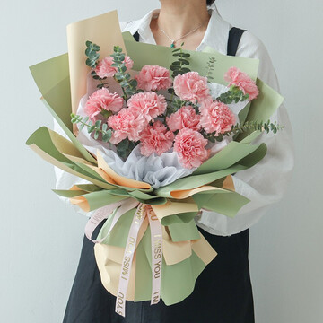 11朵粉色康乃馨,尤加利间插