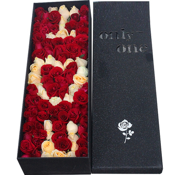 75支精品混色玫瑰(红玫瑰、香槟玫瑰),香槟拼字I❤U