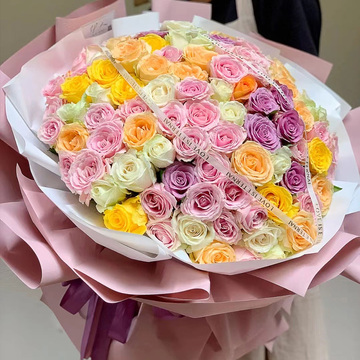 99朵混搭玫瑰(白玫、香槟、戴安娜、紫玫)