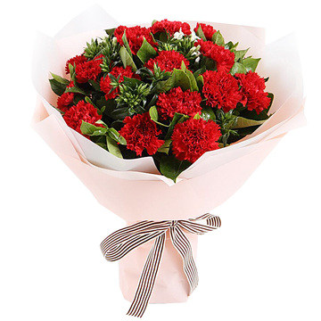 21朵红色康乃馨,白色石竹梅点缀,栀子叶间插