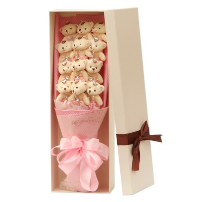 12只小熊,粉色波点卡纸包装,内衬白色绵纸,粉色丝带蝴蝶结扎束
