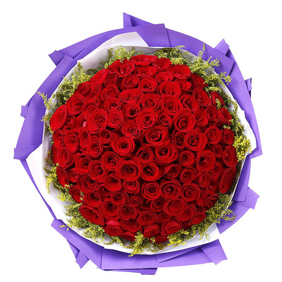 内衬白色平面纸,外层紫色牛皮纸圆形包装,白色雾面纸束腰,粉色缎带扎束花语:这是我们千年之约的守候,这里是我们梦想成真的典殿,而你,就是我的理想伴侣附送:
