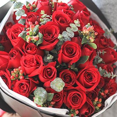 66支红玫瑰搭配红豆、尤加利搭配