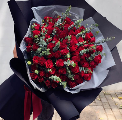 99枝红玫瑰,尤加利搭配