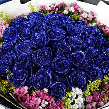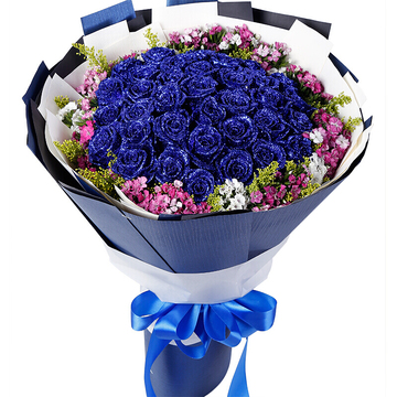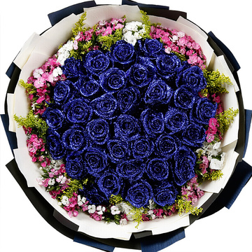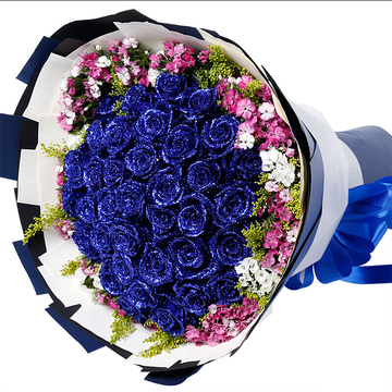 33朵精品蓝色妖姬,黄莺、相思梅搭配。