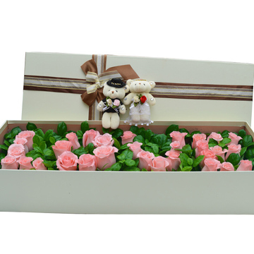 长方形礼盒装花语:谁在想念你?谁在牵挂你?谁舍不得你?谁离不开你?谁最心疼你?谁最惦记你?谁最祝福你?不用想啦,除了我,还有谁?附送:
