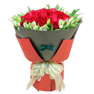 33朵红玫瑰,高级辅花水仙百合外围