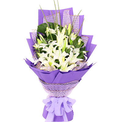 紫色罗莎纹包装,白色纱网丝带花语:爱的情真意切,爱的思念长长,今生相守,永不言弃,幸福的花朵才会向我们盛开。附送: