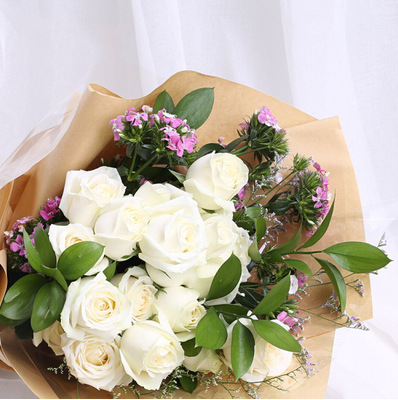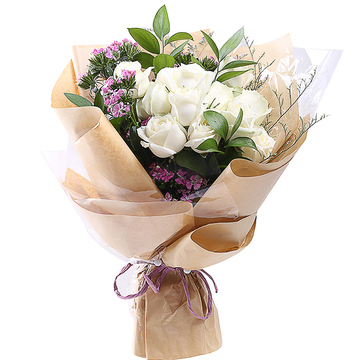 玻璃纸内衬,牛皮纸外围精美包装,粉紫色丝带蝴蝶结束扎。花语:夜深人静,对影难眠,远方的你,是否知道我在想你?窗外,明月如霜,洒满西楼,淡淡思念淡淡愁。附送: