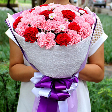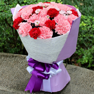 33朵红色粉色康乃馨混搭,粉色小菊间插