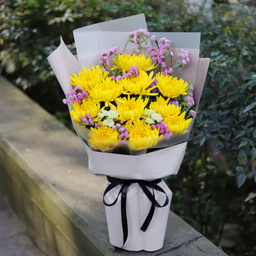 11朵黄菊,粉色满天星搭配