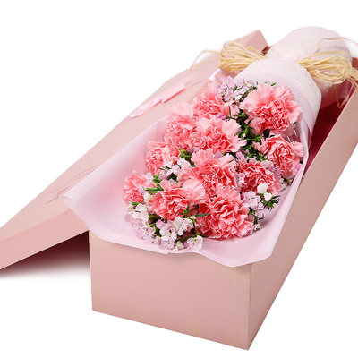 粉色素纸扇形包装,白色落水纸束腰,拉菲草扎束,粉色礼盒。花语:你的关爱,穿过时空的距离,一直装在我的心底;你的视线,跨越时空的阻碍,一直系着我的身影,祝你健康平安!附送: