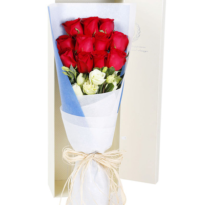 精美长方形礼盒。花语:爱如初心,有时澎湃如潮,有时冷静如水,而不变的是永远的纯粹。附送: