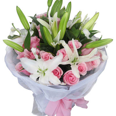 19枝戴安娜玫瑰搭配3枝多头香水百合。