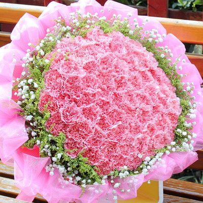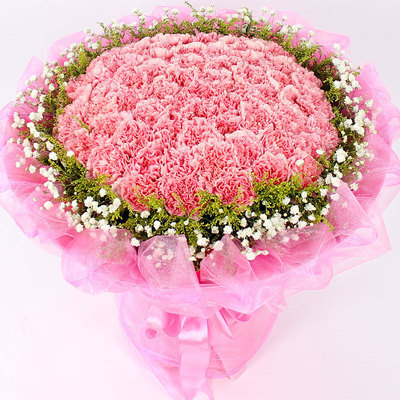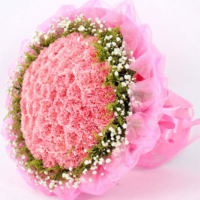 66朵粉康乃馨,大黄莺和满天星外围