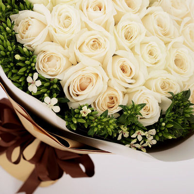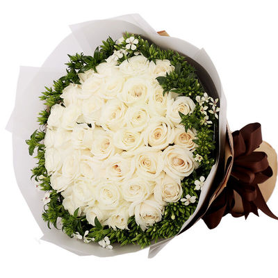 33朵白玫瑰,石竹梅外围丰满点缀