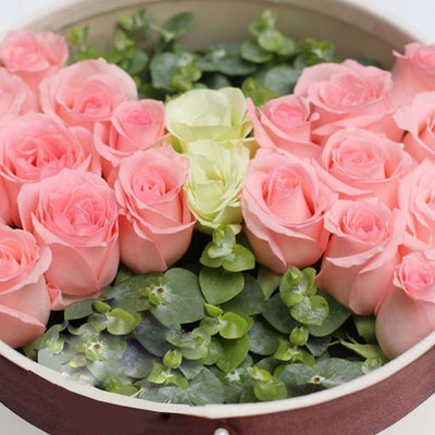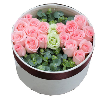 精美圆形花盒。花语:我东找找,西找找,南找找,北找找,上找找,下找找,左找找,右找找,可是我找遍四面八方都找不到我的心了,突然明白过来,原来我的心已经被你偷走了。附送:
