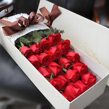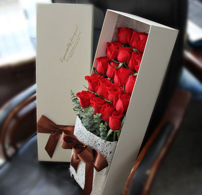 精品礼盒包装花语:无论我们相距多么遥远,我的思念总在你的身边。想你!附送: