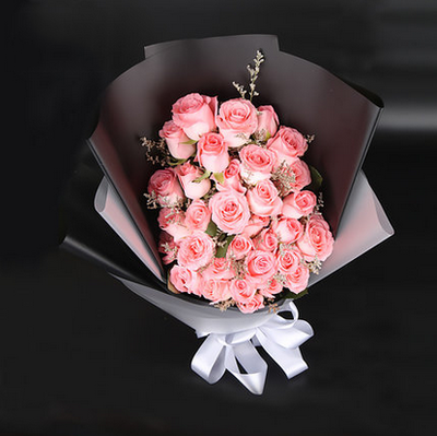 黑色艺术纸内衬精品包装,外用高档白色亮光纸,白色精美蝴蝶结束扎花语:如果没有相等的爱,那就让我爱多一些吧。附送: