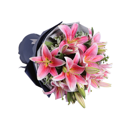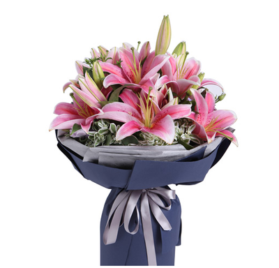 内层银灰色厚棉纸,外层深蓝色条纹纸,银灰色缎带花结花语:每一颗心都是一束美丽的花,跟随你的心,寻找真正的快乐,将热情发自内心怒放。附送: