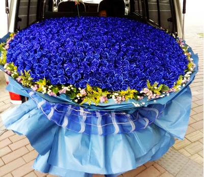 999朵蓝玫瑰,勿忘我、满天星发配。