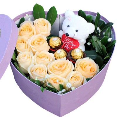 精美心型礼盒花语:有太多的事等我们去做,有太多的话对你说,我要为你造一个温暖的窝,风风雨雨一起度过,爱你今生无悔附送: