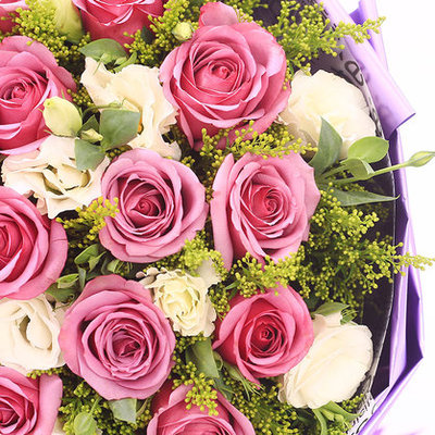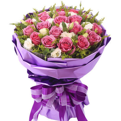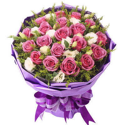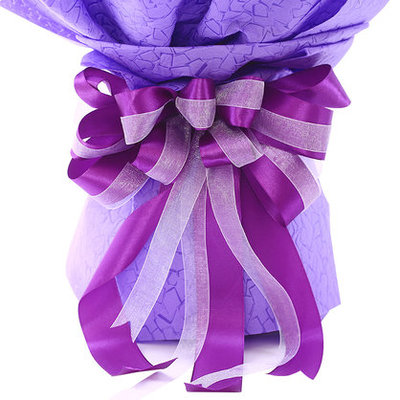 透明英文纸内衬,紫色卡纸圆形包装,精美紫色缎带蝴蝶结束扎。花语:如果我能拥有这份荣幸,我愿终身陪伴着你,一年四季陪伴着你附送:
