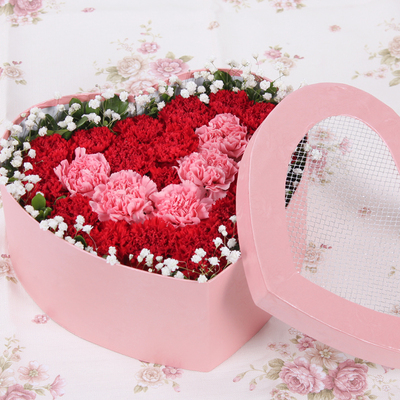 粉色心形礼盒花语:拨动真诚的心弦,铭记成长的辛酸,成功的道路上永远离不开您,亲爱的老师,祝您永远幸福!附送: