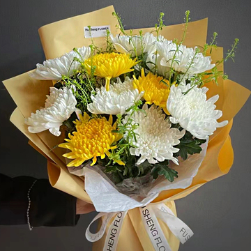 8朵白菊3朵黄菊,配叶间插