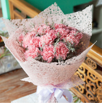 19朵粉色康乃馨搭配情人草
