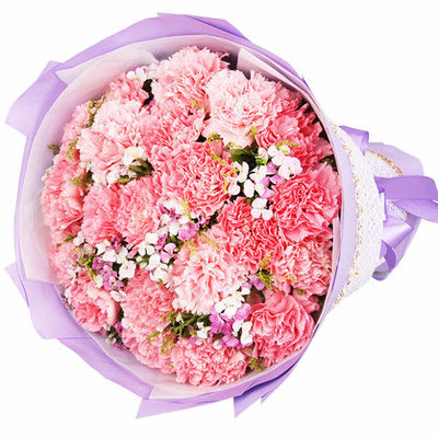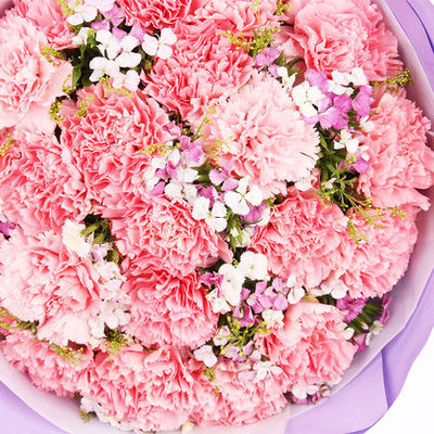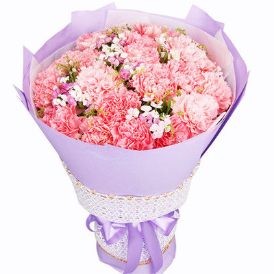 19朵粉色康乃馨,搭配相思梅、黄莺