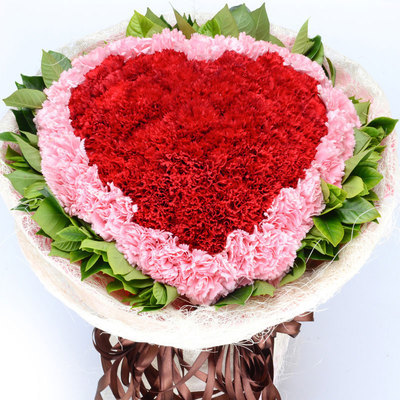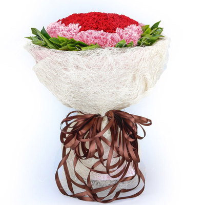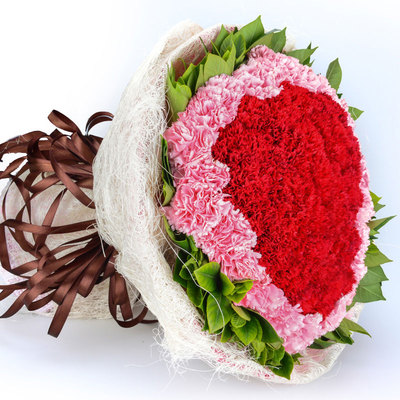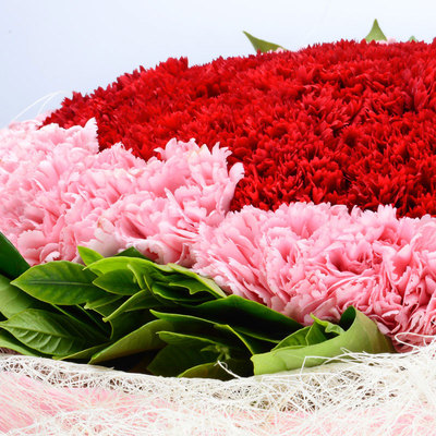 33枝红色康乃馨,33枝粉色康乃馨,绿叶外围