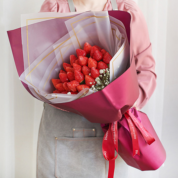 白色金边雾面纸+酒红色欧雅纸扇形包装,红色缎带束扎花语:因为有你,我变得充满活力;因为有你,我改变了生活方式;因为有你,我的生活更加精彩!附送: