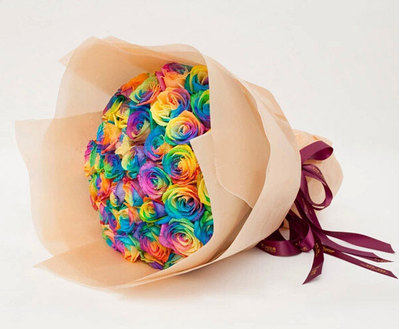 淡黄色精品纸包装,酒红色蝴蝶结束扎。花语:星星落下要3秒,月亮升起要一天,地球公转要一年,想一个人要24小时,爱一个人要一辈子,但一句贴心的话只要一秒:“ILOVEYOU!”!附送: