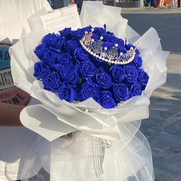 精选33枝蓝色妖姬。一个皇冠