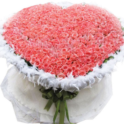 999朵戴安娜粉玫瑰,周围绿叶点缀。