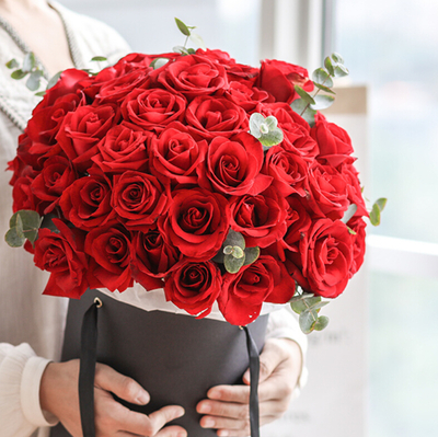52朵红玫瑰,尤加利叶搭配
